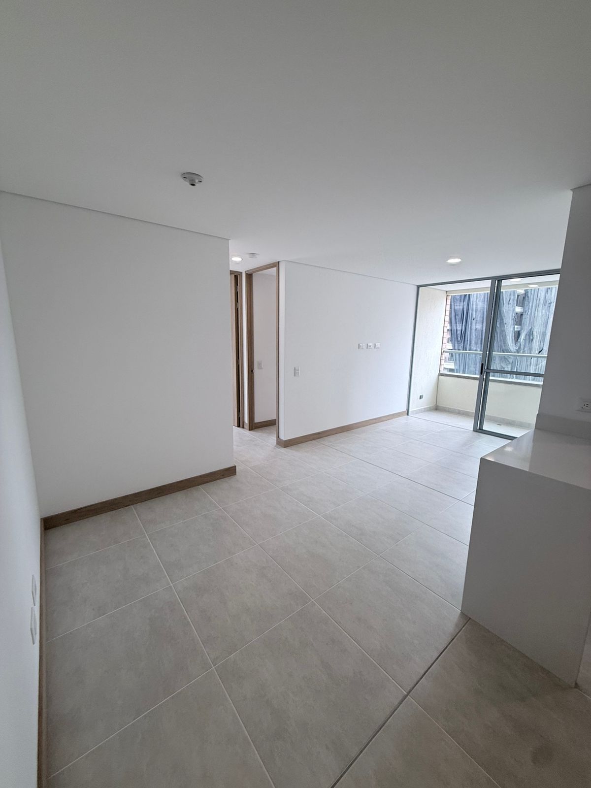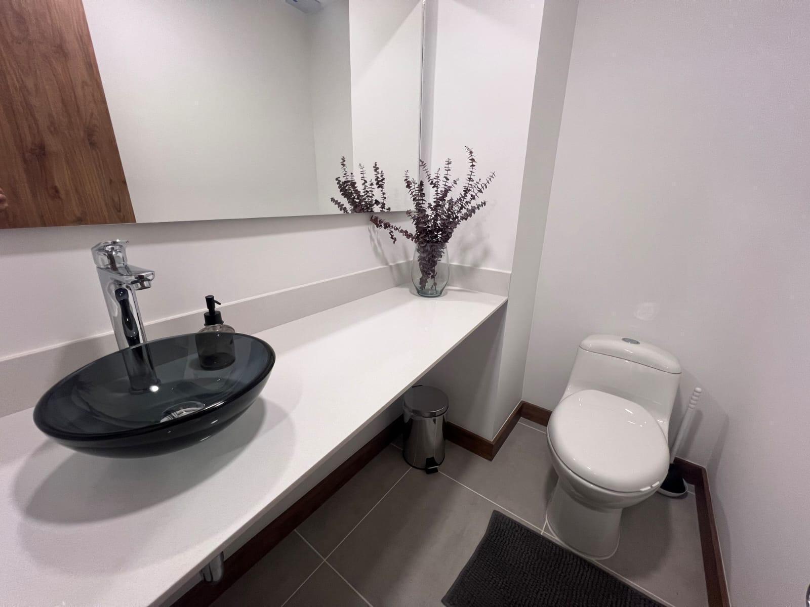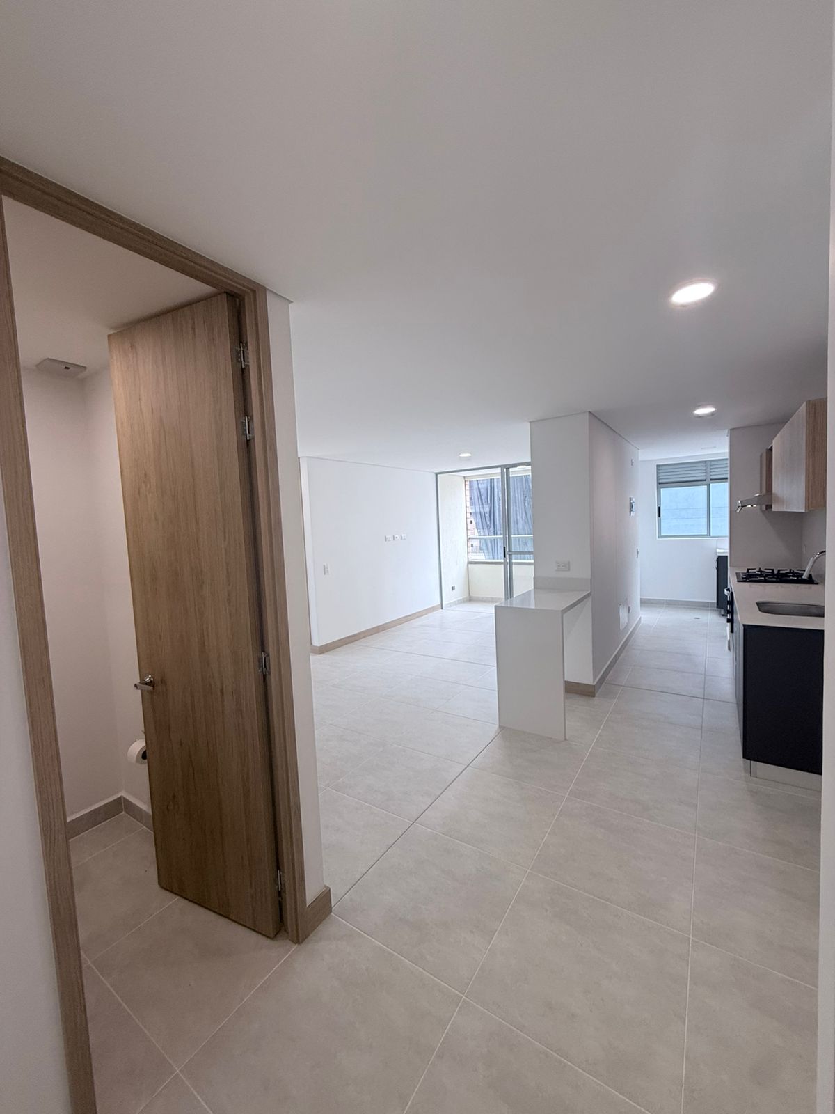 Cuenta con 2 alcobas, la principal con baño privado y vestier, además de baño auxiliar completo y baño social (medio). Su distribución incluye sala, comedor y estar integrados, cocina abierta con barra tipo isla, zona de ropas independiente y un balcón, ideal para disfrutar de iluminación natural y ventilación.