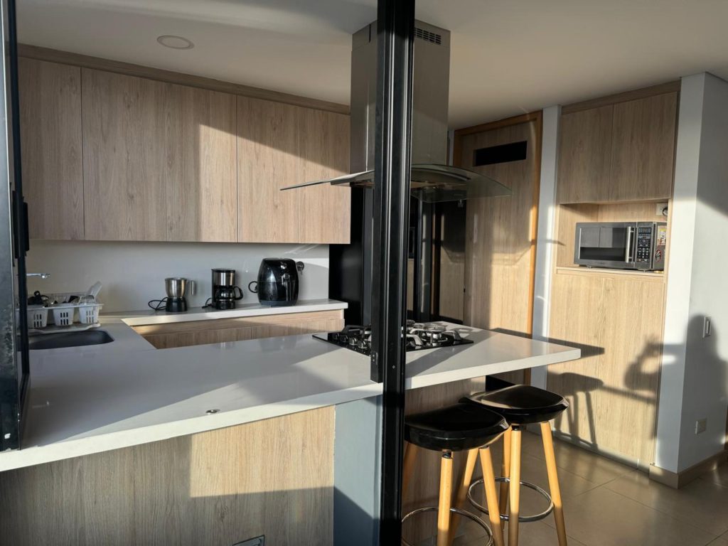 Área de 87 M, 3 habitaciones, la principal con baño y vestier, baño social, balcón con bonita vista a la ciudad, sala comedor, cocina integral abierta, zona de ropas independiente, parqueadero doble lineal y útil. Unidad completa: Piscina semi olímpica, otras 2 de niños y adultos, sauna, turco, jacuzzi, gym, sky club, cancha de squash, placa poli deportiva, salón social, parque infantil, senderos, mini market. Cerca a colegios, guarderías, iglesias, malls, restaurantes. Fácil acceso por la Av. Las Palmas, Transversales Superior e Inferior, acceso a rutas integradas del Metro, y transporte intermunicipal al oriente Antioqueño, a tan solo 15 minutos del Aeropuerto JMC.